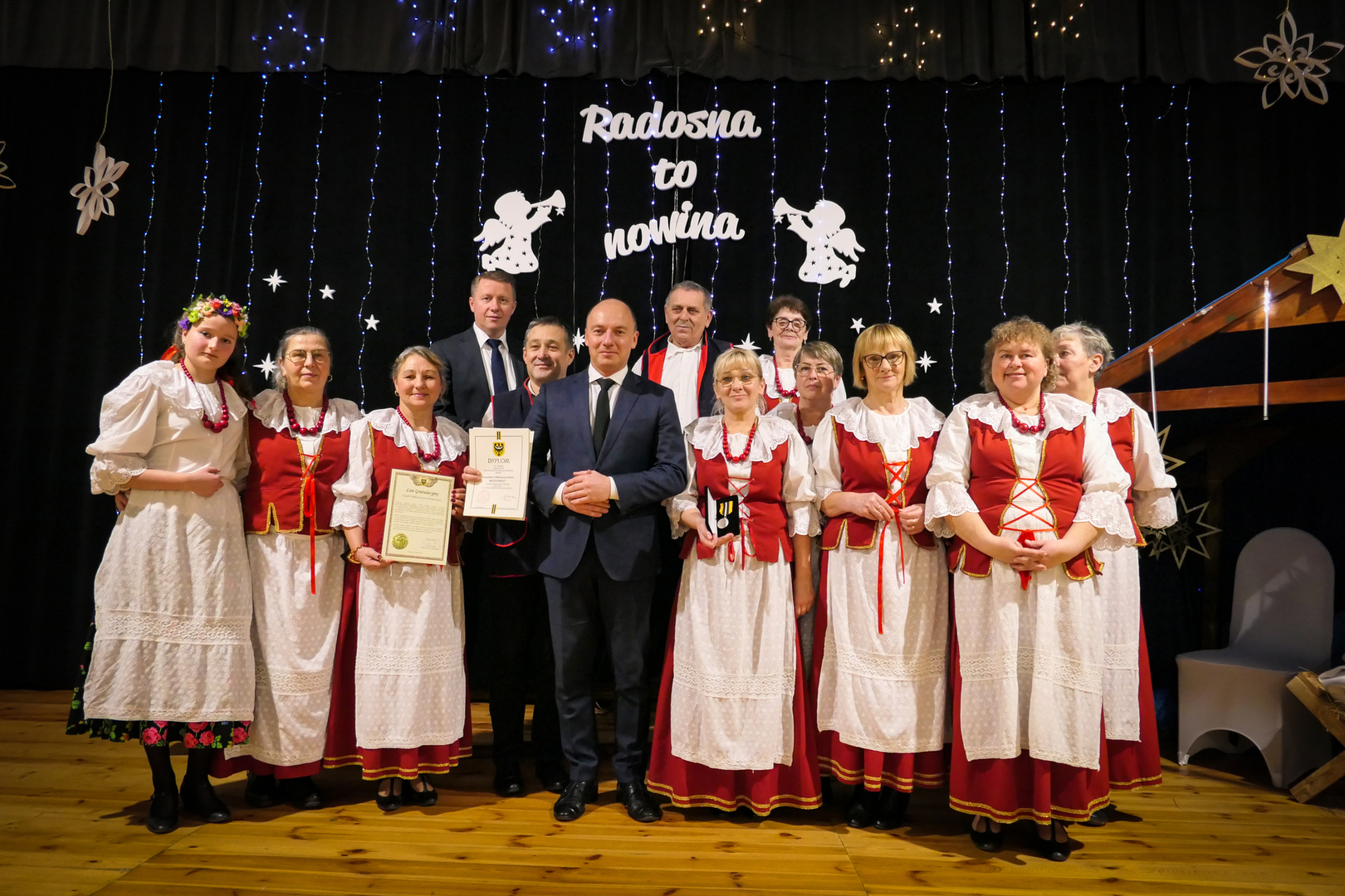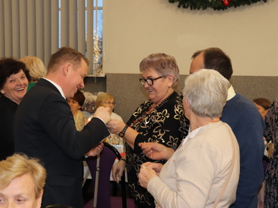Na spotkaniu nie mogło zabraknąć tradycyjnego wspólnego śpiewania kolęd do których zaprosił Wójt Gminy. Radość towarzyszyła wszystkim.