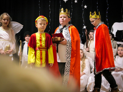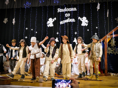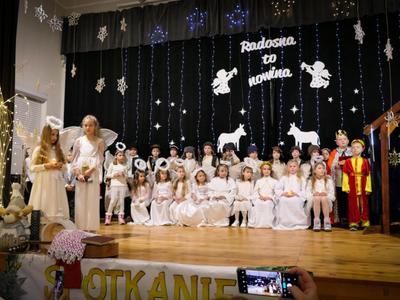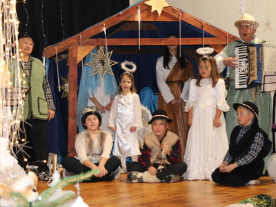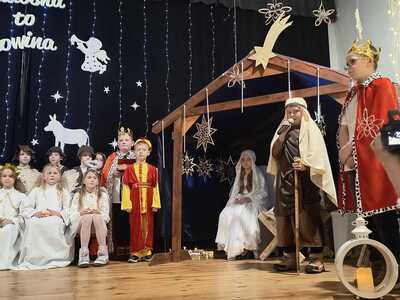 W trzeciej części Nasze wydarzenie uświetnili uczniowie kl. 0 i III ze Szkoły Podstawowej im. Jan Pawła II w Nielubiprzedstawiając Jasełka Bożonarodzeniowe otrzymując gromkie brawa.