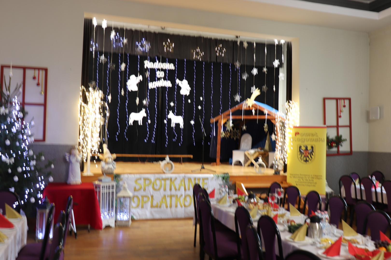 W dniu 10 grudnia 2023 r. Wójt Gminy Żukowice wraz z Gminnym Ośrodkiem Pomocy Społecznej w Żukowicach z siedzibą w Nielubi we współpracy z Gminną Biblioteką w Nielubi zorganizował imprezę integracyjną pn. „SPOTKANIE OPŁATKOWE” dla osób niepełnosprawnych, samotnych i najstarszych mieszkańców Gminy Żukowice. Spotkanie odbyło się Sali Wiejskiej w Nielubi.