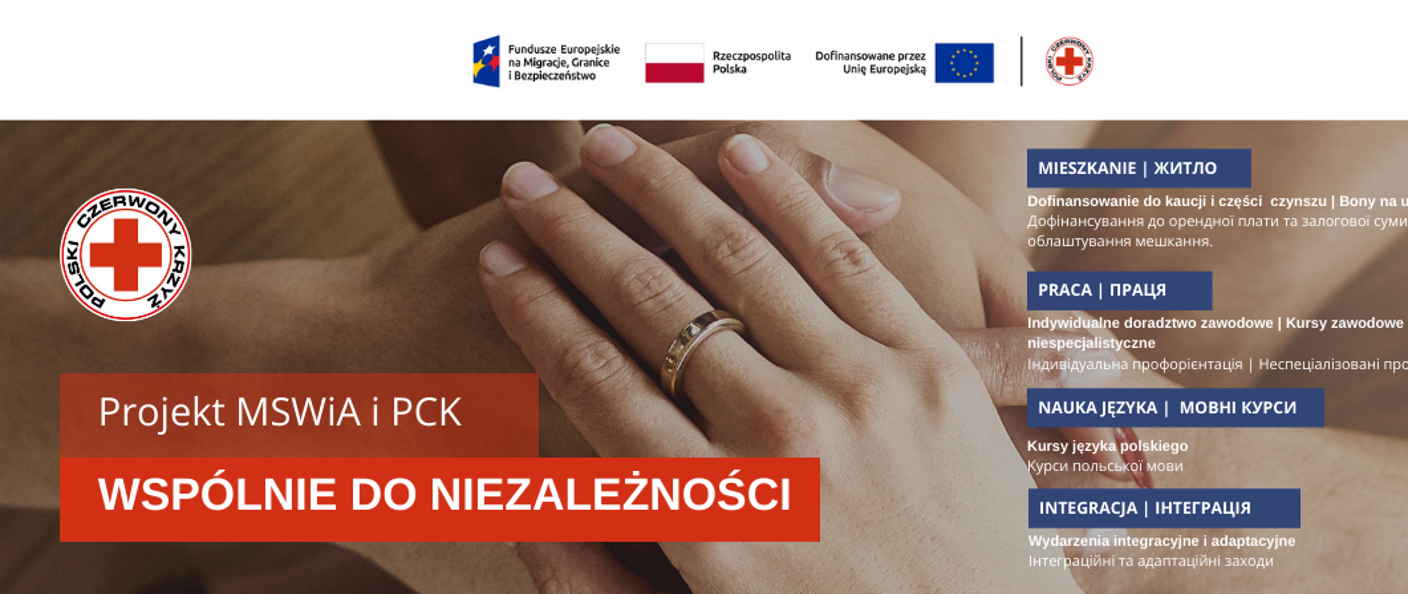 Program “Wspólnie do niezależności” realizowany jest przez Ministerstwo Spraw Wewnętrznych i Administracji (MSWiA) w ramach partnerstwa z Polskim Czerwonym Krzyżem (PCK) i Polskim Centrum Pomocy Międzynarodowej (PCPM). Jest finansowany ze środków Unii Europejskiej w ramach projektu FAMI.02.SPECIFIC ACTIONS, Fundusz Azylu, Migracji i Integracji 2021 – 2027 (90%) oraz budżetu Państwa (10%). Całkowity koszt projektu wynosi 93 499 172,60 zł, z czego wysokość dofinansowania z Unii Europejskiej to
