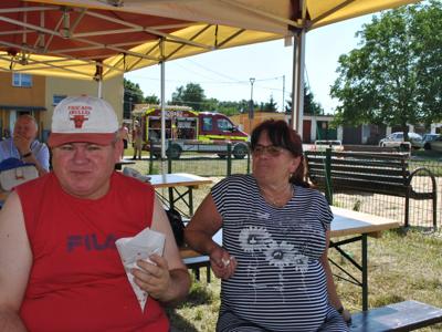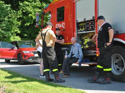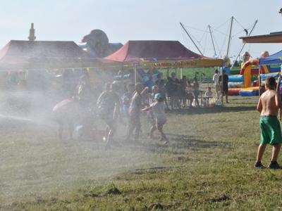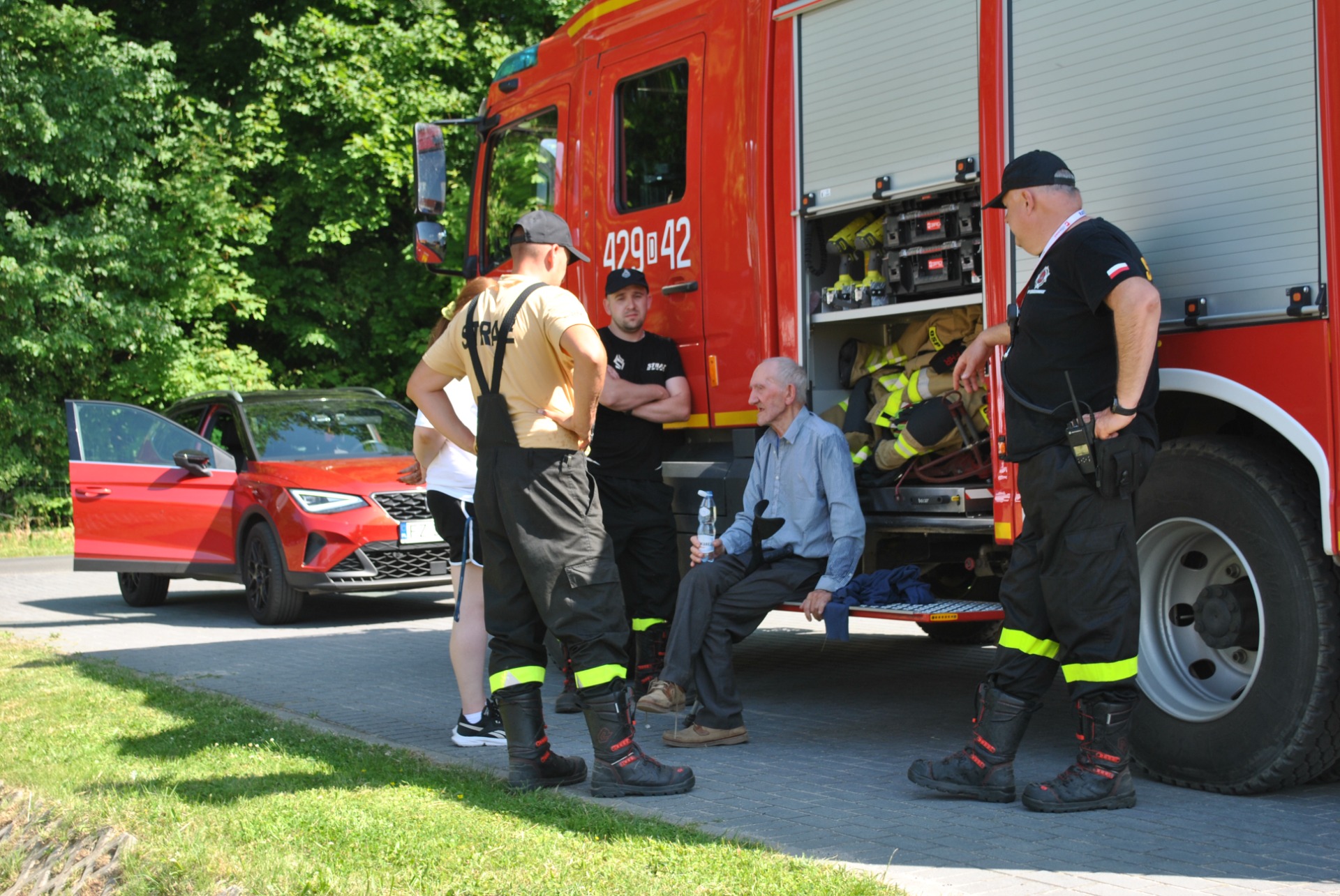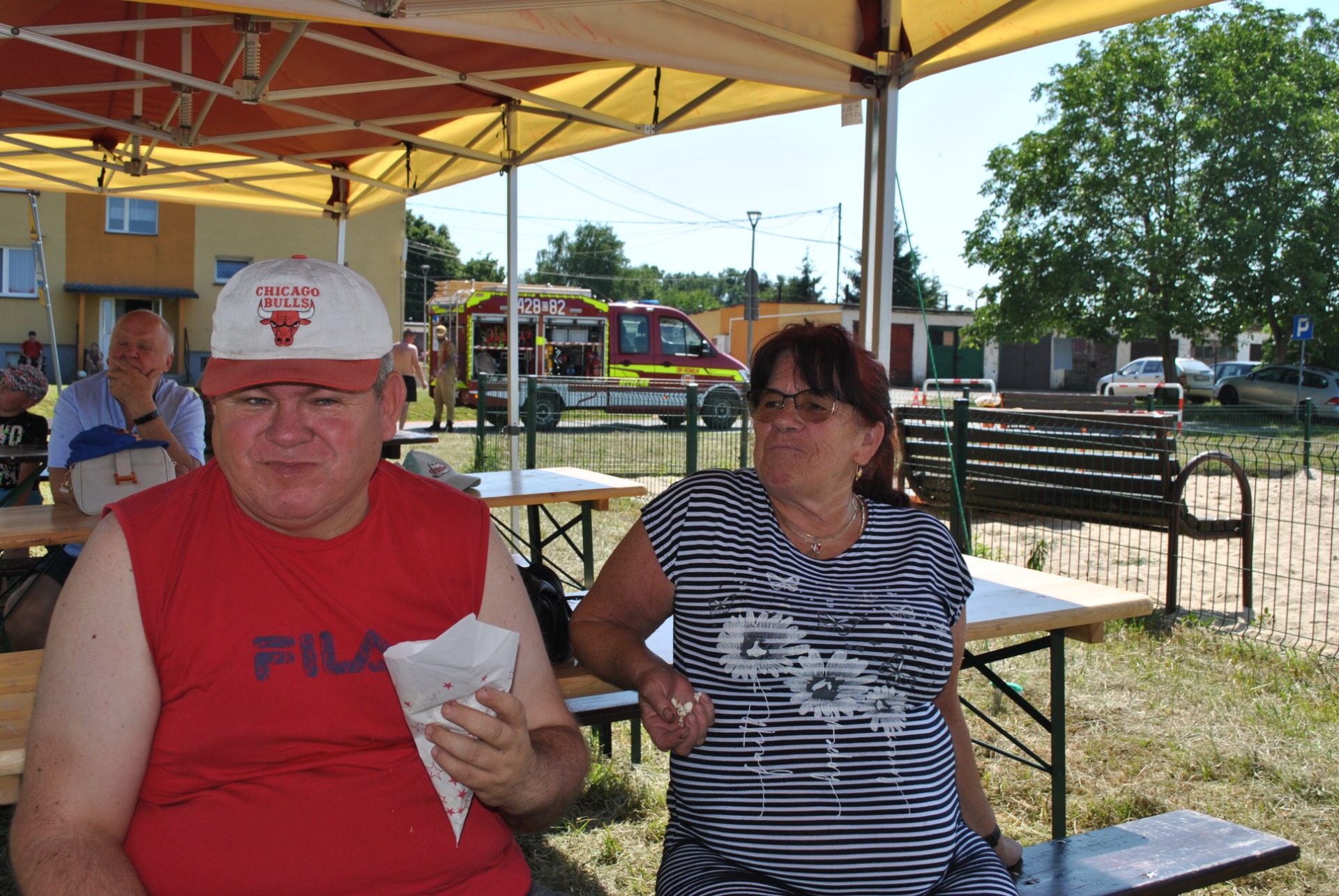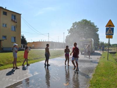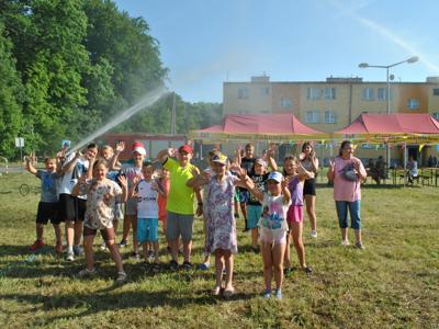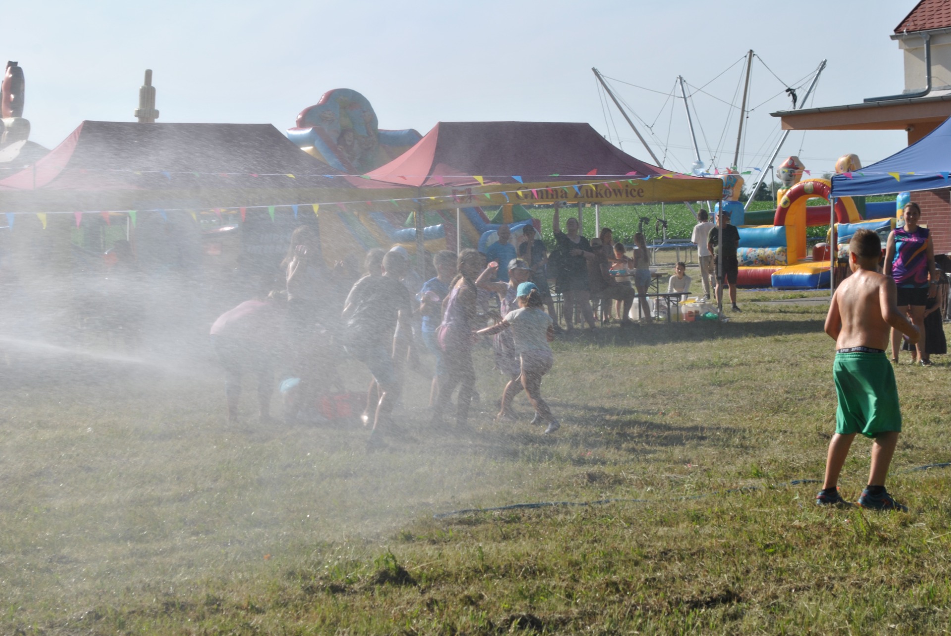 Strażacy z OSP Kromolin i OSP Dobrzejowice przygotowali dla uczestników kurtynę wodną, która w ten upalny dzień zapewniła uczestnikom upragnione orzeźwienie.